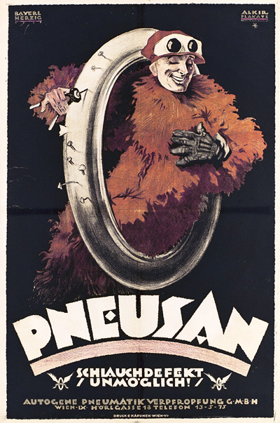 Autogene Pneumatik Verpfropfung GmbH, Wien. Entwurf Rudolf Bayerl & Willy Herzig (Alkir Plakate), Österreich 1920. Druck E. Kafunek, Wien. Größe 94,5 x 63,5 cm.