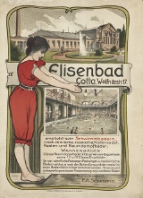 Ab 1904 Hebbelbad, Dresden. Entwurf „TH“ aus Uebigau (bei Dresden) oder Th. Uebigau, Deutschland ca. 1899. Druck Kunstanstalt Wilhelm Hoffmann, Dresden.