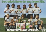 Die deutsche Fußball-Nationalmannschaft im Jahr der Weltmeisterschaft 1974 in Deutschland. Dargestellte Spieler: Müller, Beckenbauer, Hoeneß, Breitner, Maier, Vogts; unter Vorbehalt: Höttges, Schwarzenbeck, Grabowksi, Heynckes, Hölzenbein.