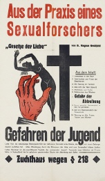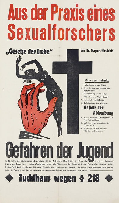Deutsches Plakat zu einer Aufführung des Films von 1927 der Humboldt Film GmbH, Berlin. Regie Dr. Magnus Hirschfeld. Anonymer Plakatentwurf, Deutschland 1927/28. Ohne Druckvermerk.