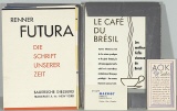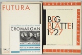 2. Werbemappe für die von Paul Renner entworfene Schrifttype mit 20 z. Tl. gefalteten, zumeist mehrfarbigen Beilagen (darunter 17 Anwendungsbeispiele u. 3 Beilagen speziell zur Schrift). Mit dem achtseitigen Schriftmusterheft "Renner Futura - Die Schrift unserer Zeit" sowie den Schriftmusterheften "Lichte Futura" u. "Futura Schlagzeile". Farb. illustr. OrMappe, 27,7 x 20,2 x 0,8 cm, 232 Gramm.