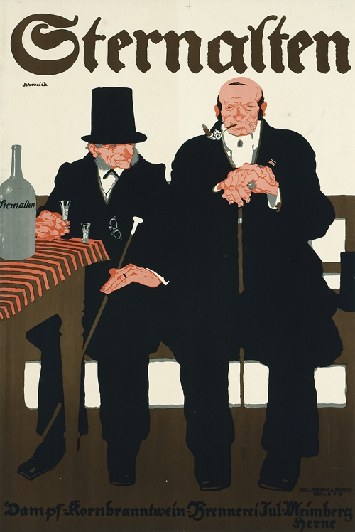 Dampf-Kornbranntwein-Brennerei Jul. Meimberg, Herne. Entwurf Paul Scheurich, Deutschland 1911. Druck Hollerbaum & Schmidt, Berlin. Größe 70,2 x 46,8 cm.