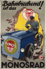 Monos Fahrzeugfabrik GmbH, Berlin. Entwurf Zentrum Plakate (Wien), Österreich ca. 1928. Druck A. Luigard, Wien. Größe 95 x 63 cm.