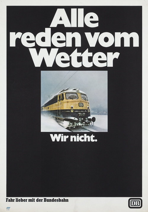 Deutsche Bundesbahn AG, Frankfurt a. Main. Entwurf H. K. McCann Company GmbH Frankfurt a. M. (Art Director: Gerhard Schneider, Text: Margot Müller), Deutschland 1966.
