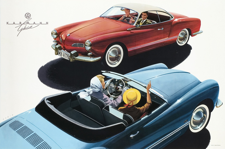 Wilhelm Karmann GmbH, Osnabrück und Volkswagenwerk GmbH, Wolfsburg. Entwurf Robert Preis, Deutschland ca. 1958/59. Druckvermerk (175169), Printed in Germany. Größe 79,9 x 119,9 cm.