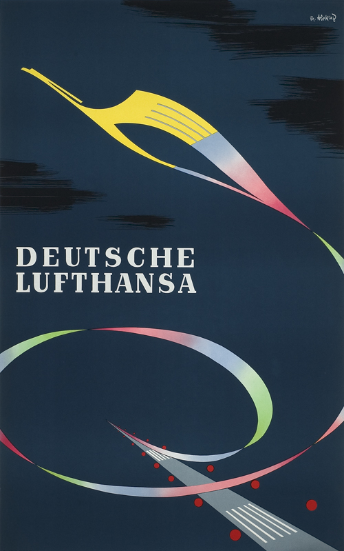 Deutsche Lufthansa AG, Köln. Entwurf Theodor Abeking, Deutschland 1956. Druckvermerk: Gedruckt in Deutschland Wbg. 1a 256/D-OL. Größe 101 x 63 cm.