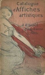 A. Arnould. 7, rue Racine, Paris. Paris Juni 1896. Englische OrBroschur mit einer mehrfarbigen Originallithographie von Toulouse-Lautrec als Schutzumschlag (Titel "Débauché"). 30 Seiten Katalog mit 412 Nummern Plakate und 39 Nummern Druckgrafik sowie 32 ganzseitige S/W-Abbildungen von Plakaten. Größe 23,7 x 14,2 x 0,8 cm, 206 Gramm.