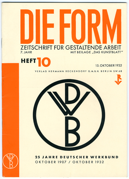 Zeitschrift für gestaltende Arbeit (mit Beilage „Das Kunstblatt„ in H. 1, 1932 - H. 3, 1933). Hg. Dr. W. Rietzler für den Deutschen Werkbund, verantwortlich f. d. Inhalt Dr. W. Lotz. Verlag Hermann Reckendorf GmbH, Berlin. Ab H. 1, 1933 Untertitel "Zeitschrift des Deutschen Werkbundes DWB und des Österreichischen Werkbundes ÖWB", ab H. 10, 1933 Untertitel "Zeitschrift des Deutschen Werkbundes DWB", verantwortl. Schriftleiter Dr. Wilhelm Lotz. Verlag W. & S. Loewenthal, Berlin, ab H. 4, 1933 Verlag Wendt & Matthes, Berlin.