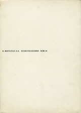 H. Berthold AG, Berlin (1932). Entwurf der Probe Herbert Bayer, Berlin für die von Walter Wege (Berlin) 1931/1932 entworfenen Schriften. Farb. illustr. OrKarton, 10 Blatt (davon 7 Blatt Anwendungsbeispiele, eine Seite z. Ausklappen) sowie 10 halbe Blatt zwischen den Anwendungsbeispielen (davon 8 Blatt gestaltetes, farbiges Seidenpapier). Größe 29,7 x 21,1 x 0,4 cm, 134 Gramm.