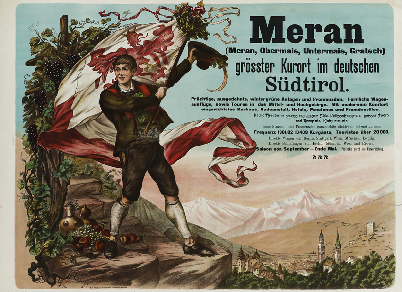 Kurverwaltung Meran. Entwurf Max Correggio, Deutschland 1886 (im Druck signiert: Max Correggio 86 - Plakat mit Eindruck von ca. 1902).
