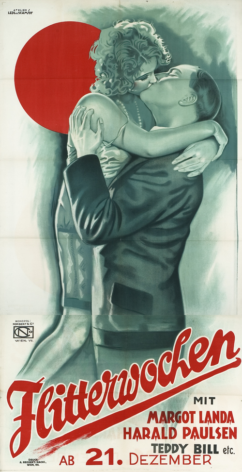 OT: Flitterwochen. L: Deutschland. J: 1928. R: Emerich Walter Emo (d. i. Emerich Josef Wojtek). D: Margot Walter, Harald Paulsen, Géza L. Weiss, Trude Hesterberg, Max Ehrlich, Teddy Bill. P: Strauß-Film-Fabrikation und Verleih GmbH, Berlin. V: Norbert & Co., Wien. Plakat zur Uraufführung des Films ab 21.12.1928 in Österreich.