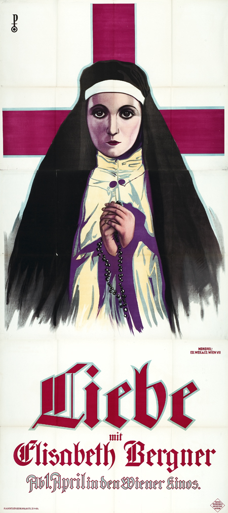 OT: Liebe. L: Deutschland. J: 1927. R: Paul Czinner. D: Elisabeth Bergner, Gräfin Agnes Esterhazy, Elza Temáry, Olga Engl, Else Heller, Hans Rehmann, Paul Otto, Arthur Kraußneck, Leopold von Ledebur, Jaro Fürth. P: Phoebus-Film AG, Berlin. V: Ed. Weil & Co., Wien. Plakat zur Uraufführung des Films ab 01.04.1927 in Wien.