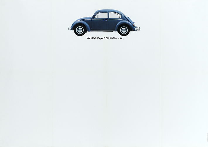Volkswagen AG, Wolfsburg. Anonymer Entwurf, Deutschland 1968/69. Druckvermerk: Printed in Germany 2.69/175.771.02. Größe 84,2 x 59,4 cm.