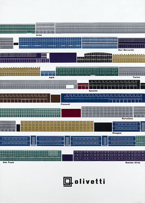 206 olivetti - 10 Fabrikgebäude - Ivrea, San Bernardo, Aglié, Torino, Apuania, Pozzuoli, Barcelona, Glasgow, São Paulo, Buenos Aires