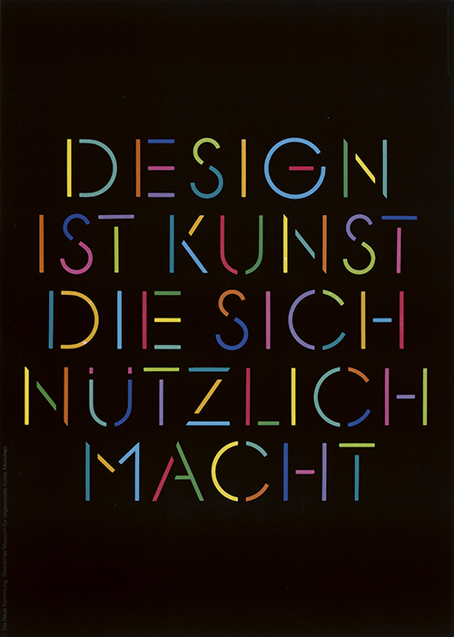 Die Neue Sammlung, Staatliches Museum für angewandte Kunst, München. Entwurf Pierre Mendell & Klaus Oberer ((Text: Carlos Obers), Deutschland 1984. Ohne Druckvermerk (Wartelsteiner, Garching). 118,8 x 84 cm.