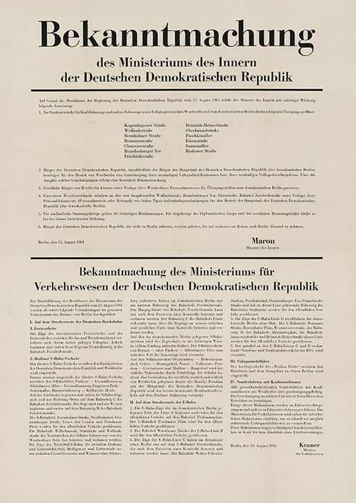 Ministerium des Innern der DDR (Karl Maron), Ministerium für Verkehrswesen der DDR (Erwin Kramer). Bekanntmachung vom 12. August 1961.