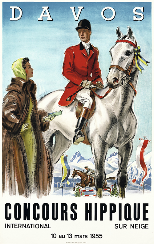 Das erste Pferderennen auf Schnee fand in Davos 1951 statt. Es wurde mit dem gleichen Motiv beworben.