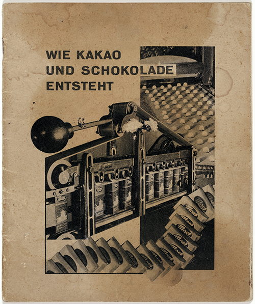 Wie Kakao und Schokolade entsteht. 70 Jahre Most 1859-1929. Jubiläumsschrift der Most GmbH, Halle/Saale (1929). Fotomontage und Typografie Lotte Pottel, Halle. Fotografische Aufnahmen Hans Finsler, Halle. Textbearbeitung Hans Bock, Hannover. Tiefdruck Rotophot AG, Berlin.