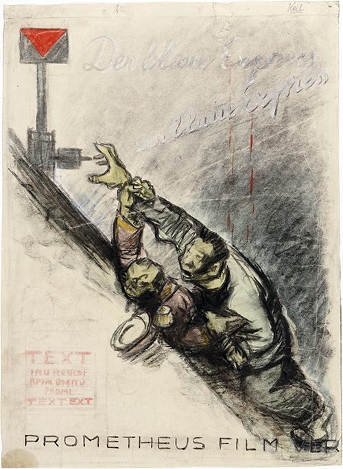 Prometheus-Film Verleih, Berlin. Entwurf von Ék Sándor (Alex Keil) 1930 für das deutsche Plakat für den Sovkino Film "Goluboi Ekspress" UDSSR 1929.