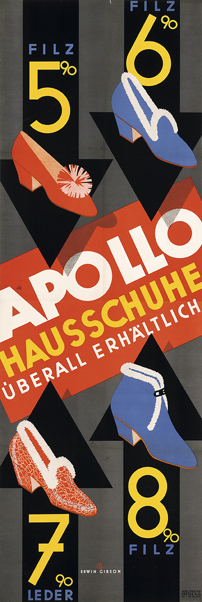 Apollo Schuhwaren, Wien. Entwurf Erwin Gibson, Österreich 1932 (Plakat rückseitig hs. datiert 1.7.32).