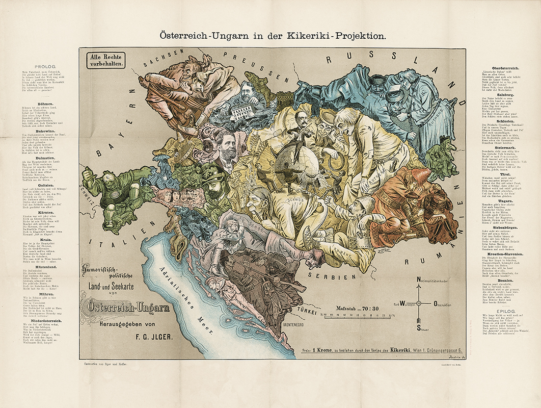 137 Österreich-Ungarn in der Kikeriki-Projektion - Humoristisch-politische Land- u. Seekarte von Österreich-Ungarn