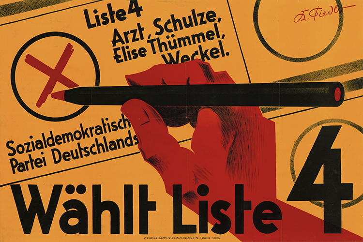 Plakat der Sozialdemokratischen Partei Deutschlands (nach Abspaltung der alten Sozialdemokratischen Fraktion) zur Landtagswahl in Sachsen am 31.10.1926.