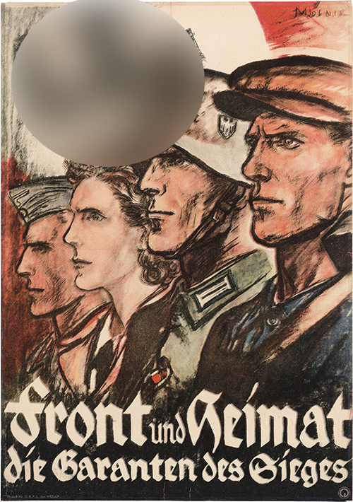 War gefaltet, kleine Randeinrisse, auf Papier aufgezogen, Nadellöcher, im äußeren Rand umlaufend schwache Bräunung. - Plakat angekündigt in "Unser Wille und Weg" H. 1, Januar 1941.