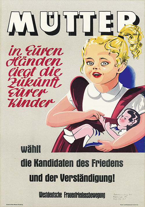 Plakat der Westdeutschen Frauenfriedensbewegung zur BTW am 6.9.1953. Verantwortlich Miersen, Flensburg.
